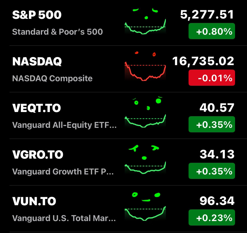 In a distracted moment this past Friday evening, when my brain had permission to drift after a busy day, I opened up the stock-tracking app on my phone and was amused to see the following:
