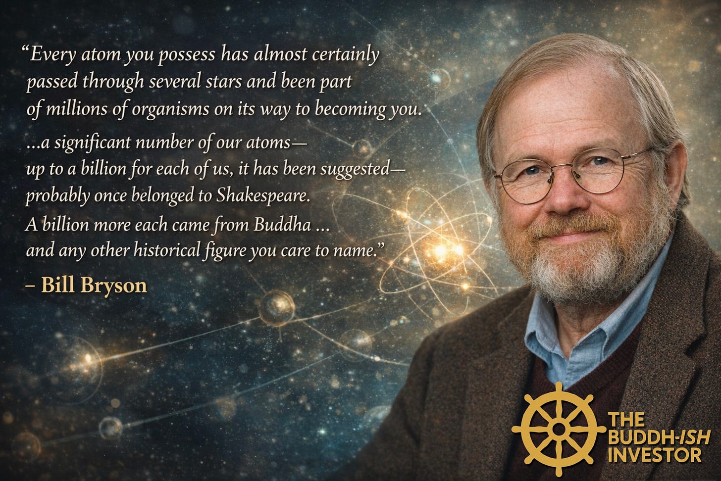 “Every atom you possess has almost certainly passed through several stars and been part of millions of organisms on its way to becoming you...a significant number of our atoms—up to a billion for each of us, it has been suggested—probably once belonged to Shakespeare. A billion more each came from Buddha...and any other historical figure you care to name.”